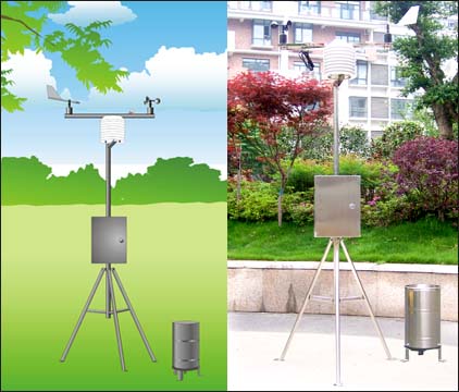 自動(dòng)氣象站,用于對(duì)風(fēng)向、風(fēng)速、雨量、氣溫、相對(duì)濕度、氣壓、太陽輻射、土壤溫度、土壤濕度等九個(gè)氣象要素進(jìn)行全天候現(xiàn)場監(jiān)測。具有手機(jī)氣象短信功能,可以通過多種通訊方法(有線、數(shù)傳電臺(tái)、GPRS移動(dòng)通訊等)與氣象中心計(jì)算機(jī)進(jìn)行通訊,將氣象數(shù)據(jù)傳輸?shù)綒庀笾行挠?jì)算機(jī)氣象數(shù)據(jù)庫中,用于統(tǒng)計(jì)分析和處理。